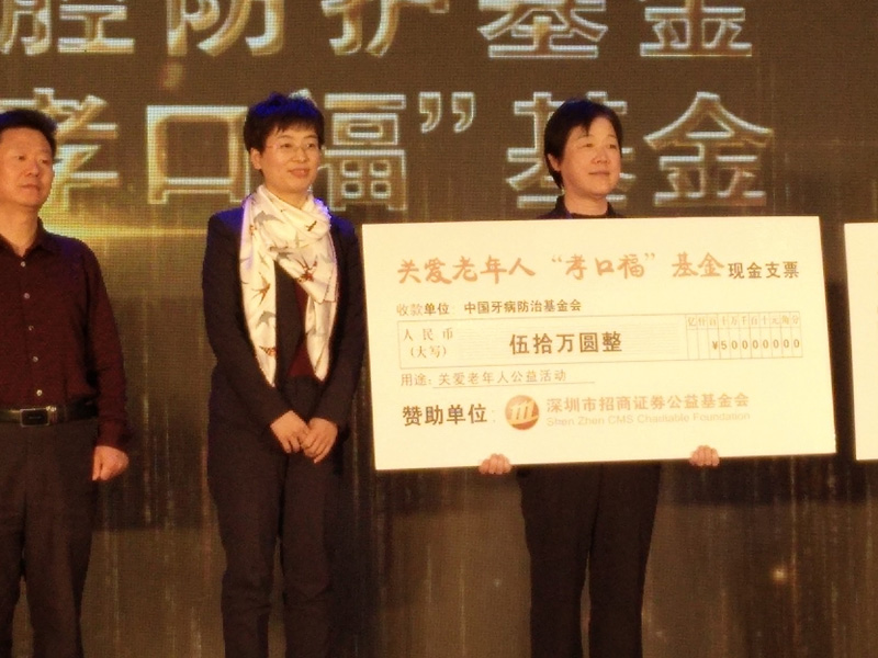 2017年11月3日,由由招商证券公益基金会向中国牙病防治基金会捐赠50万元并与之共同发起的"孝口福"行动公益项目正式启动。
